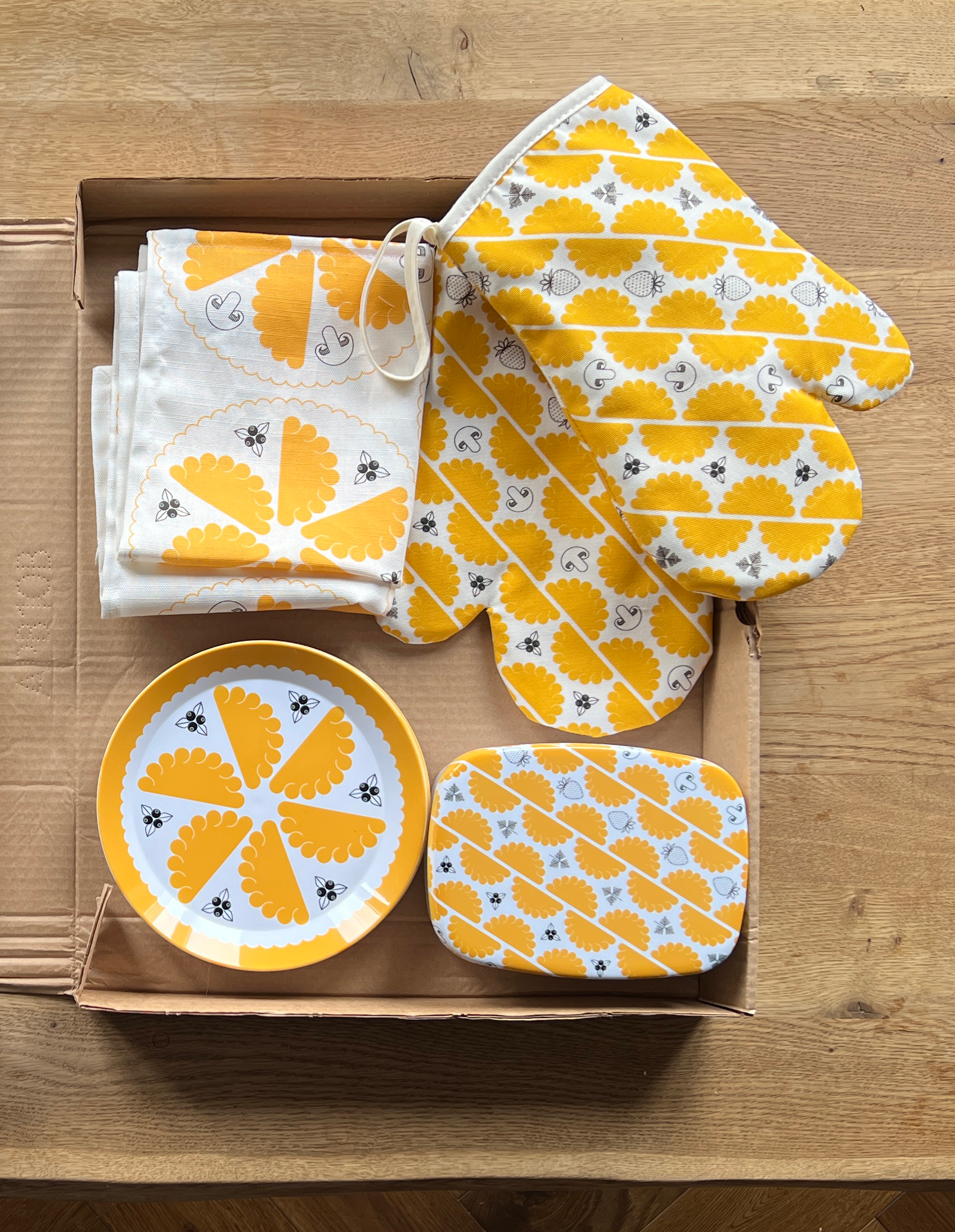 Bring a little joy to your kitchen with our Pierogi Party oven glove — a celebration of everyone’s favorite Polish dumpling. With its bold, cheerful pattern and high-contrast colors, this glove is as functional as it is fun. Whether you're baking babka or roasting beets, it’ll keep your hands safe and your style strong.